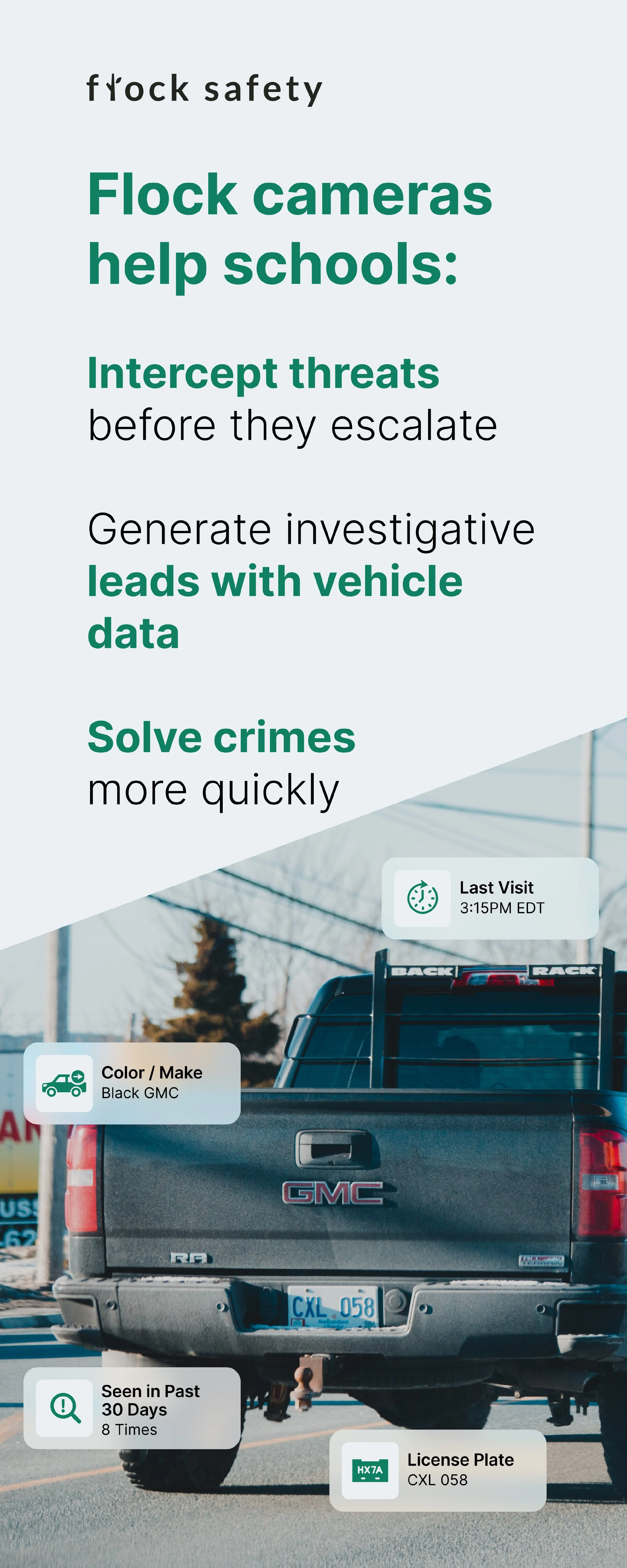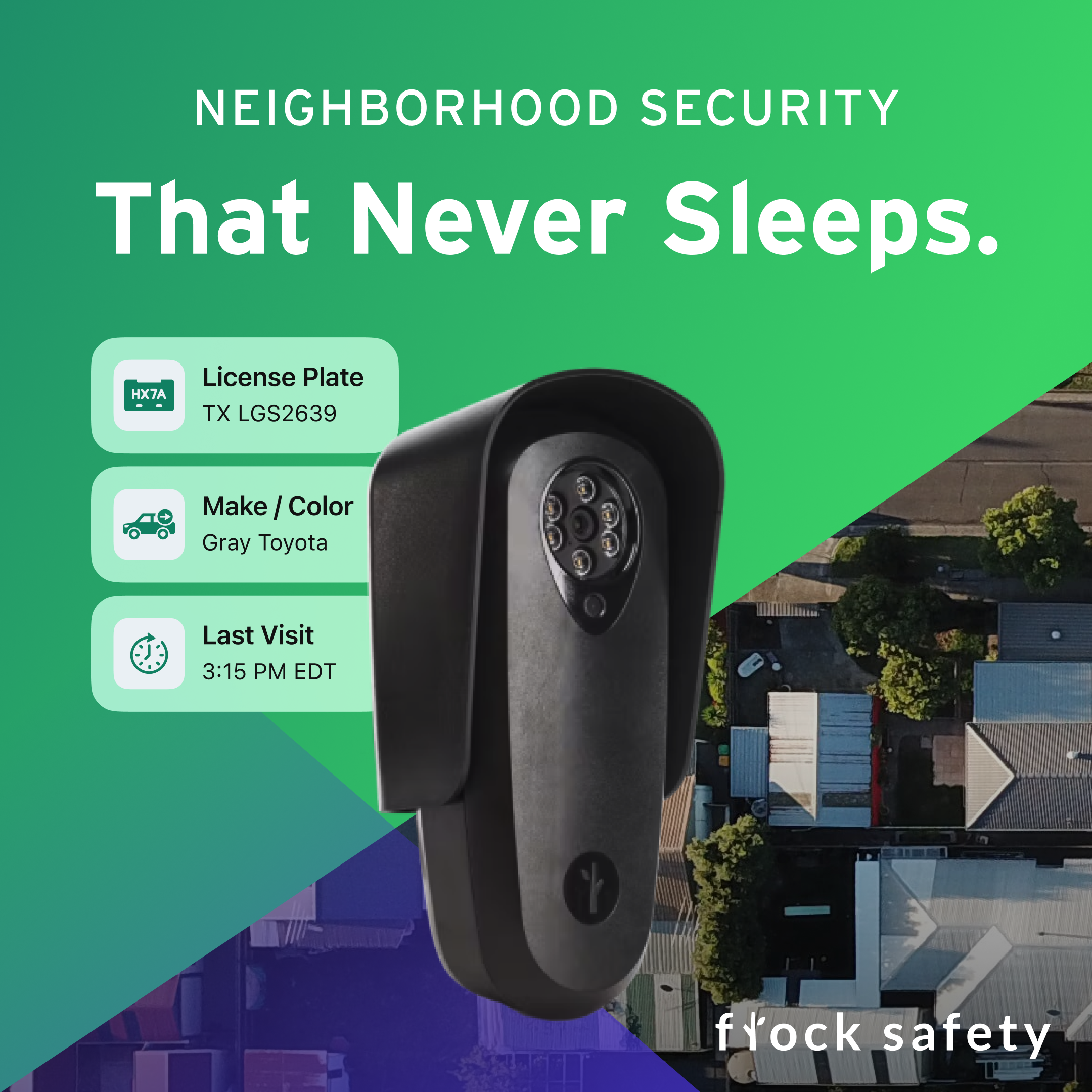 Flock Safety is an American manufacturer and operator of automated license plate recognition, video surveillance, and gunfire locator systems. I helped create several digital and print marketing materials and ads for them.